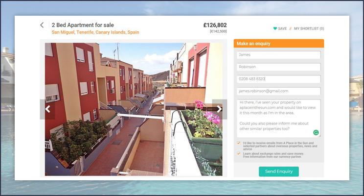You'll then be prompted to either sign into your A Place in the Sun account or create one if you haven't done so already. This is a quick and easy process, which will allow you to manage your property search a lot easier.