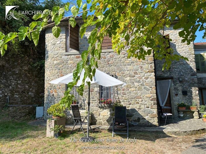 Accommodation downstairs comprises: Open plan living-room with dining-area and fitted kitchen at one end, utility room and bathroom. Upstairs are two bedrooms, small bathroom and study area. The property also has gas central heating. Outside there is a patio for a table and chairs. Parking is at the property. The village is approximately 10 mins from the town of Aulla.