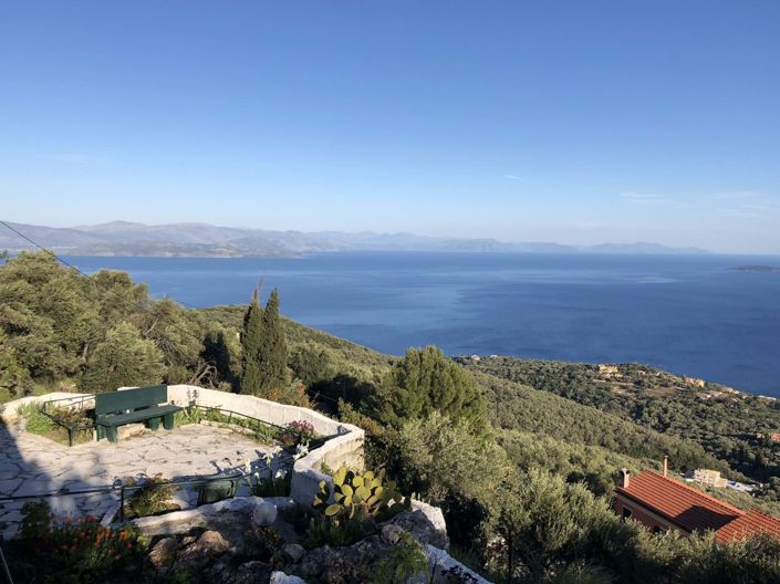 On the lower edge of the village of Spartilas, this large house has been built on the edge of its plot, in the perfect spot to take advantage of the most spectacular view.