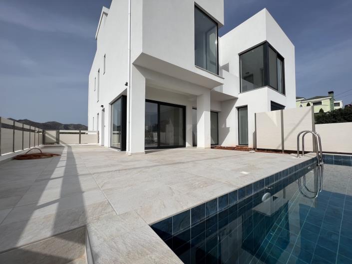 The ground floor invites you into a spacious and inviting lounge area with direct access to the outdoor space, featuring a 22 sqm swimming pool—a perfect oasis for relaxation. The open-plan kitchen, seamlessly integrated with the lounge and dining area, is situated conveniently next to the internal staircase leading upstairs. On this floor, you’ll find the first of the three bedrooms, complete with an en-suite bathroom.