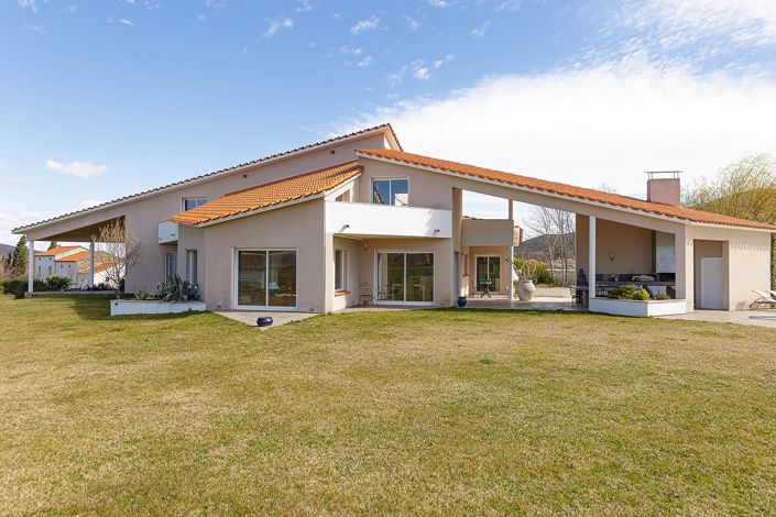 Ideally located in between the Mediterranean Sea and the Pyrenees Ski resorts, overlooking the mountains with spectacular 365° views, set on 2.08 hectares of land with pool, architect high quality contemporary villa offering 278m² total living built in 2006 with high quality materials. It is built on 2 floors and features on the ground floor a spacious and bright living room of more than 100m² with open plan fitted kitchen, all open through large door windows onto various terraces, the summer kitchen and the swimming pool. Then comes a laundry, a utility room and a large ensuite bedroom dressing room and bathroom (45m²). The first floor features 2 bedrooms one being ensuite with its contiguous shower room and private terraces, a mezzanine leading onto a luminous terrace. This stunning property also offers an independent one bedroom self-contained apartment ideal for friends and seasonal lettings. Then comes a 70m² on the ground garage with potential to create another home built on 2 floors.