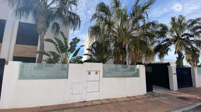 Modern South facing 3 Bedroom, 2 Bathroom Semi-Detached Villa located only meters from La Serena Golf Course. The ground floor consists of an open plan living/dining/kitchen area all tastefully decorated. Large patio doors leading from the lounge to the garden artificial grass and a private pool with modern water fountain feature, shower, BBQ and garden furniture also included. On the ground floor a double bedroom with fitted wardrobes and a fully fitted modern bathroom. On the first floor there are a further 2 double bedrooms with built in wardrobes, a bathroom which can also be accessed from the master bedroom (en-suite). The master bedroom has a walk-in wardrobe, and large patio doors to a large terrace overlooking the pool also including outdoor furniture. A large solarium with summer kitchen and BBQ also including outdoor furniture. Beautiful views of the Mar Menor on one side and the Lake and Golf Course on the other. The property comes partially furnished, kitchen comes with all white goods, A/C and underfloor heating in the bathrooms. The property is alarmed and also comes with a gated drive and a separate private covered parking space. Plot size 121m2 with a build of 95m2.