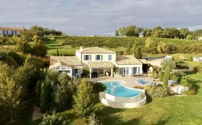 Beautiful recently-built modern home with spectacular unobstructed views for miles across the local Cognac vineyards from almost every room, as well as from the amazing infinity swimming pool and terrace.