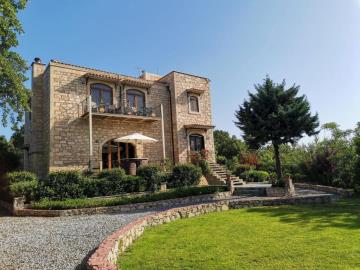 This castle villa is hidden above the quaint village of Kastellos, offers spectacular views to the Countryside, Mountains and the Sea.
