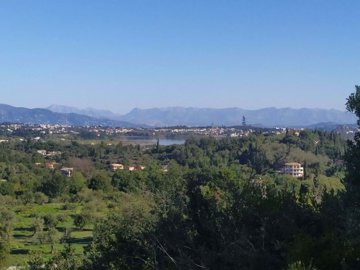 The land is on a slight slope and has all round views of Pantokrator mountain, the local countryside and the sea around Corfu Town. There are around 100 mature olive trees currently on the land which provide good grade oil and of course firewood when needed.