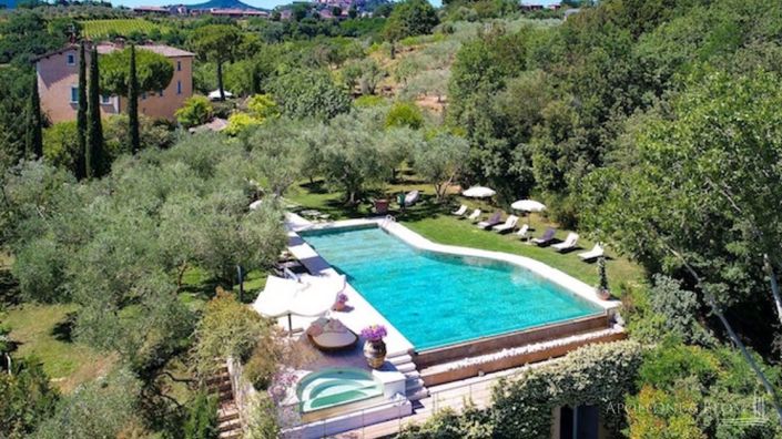 Ancient noble residence from the 1500s with a park in Montepulciano. Today, we can find a wonderful luxury relais full of character and history, immersed in the greenery just a few steps from the renowned Borgo di Montepulciano: a medieval town of rare beauty perched on the top of a hill and enriched by elegant Renaissance buildings, ancient churches, splendid squares, and small hidden corners. Its strategic position makes it an ideal place to start discovering this beautiful corner of Tuscany. The harmonious Pienza, the spa village of Bagno Vignoni, the famous Montalcino, and many other enchanting villages are easily reachable quickly. Until the end of the 1800s, it was the country residence of a noble family from Poliziano. Its construction dates back to the late sixteenth century, but the underground tunnels, now incorporated into the cellars of the villa, would date the origins of the property back to the Etruscan era. Consisting of a main villa, annexes, restaurant, and a splendid panoramic swimming pool, it is surrounded by various types of gardens: the Tuscan one, surrounded by olive trees and flowers that leads to the infinity pool; the Italian one, with the travertine fountain and the rose garden with white and red roses; the smaller ones around the main building, where it is possible to have lunch. Overall, the villa and the guest houses include 13 rooms; in addition, the Casa Albero suite, which is the jewel in the crown, which is located in the middle of the olive grove and is the latest addition, in 2019, a modern structure that guarantees maximum privacy to those who wish to enjoy a romantic experience. The suite overlooks the countryside on three sides and has a large terrace where you can relax during the day and observe the stars in the evening. The Villa and its complex are an excellent investment for living and working in a magical place in a unique territory. PROPERTY Ref: MTP1479Location: Montepulciano, Province: Siena, Region: TuscanyType: 4-story villa (1 story underground) and dependance, cottage, annexes for approx. 1000 sq m/10763 sq ft with a park, swimming pool, vineyard, and landAnnexes: building of 150 sq m/1614 sq ft on two levels, partially to be renovated; wooden suite on a tree, built in the olive grove, of 36 sq m/387 sq ft in energy class A, ecological; cottage of 80 sq m/861 sq ft; another building of 150 sq m/1614 sq ft with restaurant, kitchen, and an apartment, all soundproofed; annex of 30 sq m/322 sq ft with outdoor oven; private chapel; outbuilding 211 sq m/2271 sq ft; possibility of creating 6/7 bedrooms with en suite bathroomConditions: renovated in 2000Land/Garden: 3,5 ha/8,6 acres of which 9,700 sq m/2,3 acres of vineyard with Sangiovese, Mammolo, and Colorino grapes, and an olive grove with 450 olive trees. A beautiful park surrounds the property.Swimming pool: irregularly shaped, panoramic infinity pool with JacuzziGarage: underground, under the swimming poolLayout: