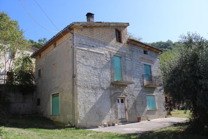 Roccascalegna, Abruzzo. Detached, habitable country house with 200sqm of garden, superb mountain views, 2 bedrooms 2km to town. The property is built on 2 floors with a good attic space that can be converted. There is street level access on both floors, with the main front door opening up to a kitchen diner and separate lounge (3rd bedroom?), there is an internal marble staircase to the 2 bedrooms and bathroom with both tub and shower. The house is paddly presented and the rolling shutters are blocked (easy to fix) making it difficult to appreciate the amazing views. Up internal stairs to the roof that seems dry and solid and could be converted to bedrooms or a sun terrace with open, amazing views. The access is easy, via a good, tarmac road with no passing traffic and very peaceful. Located 2.5km to the famous town and castle of Roccascalegna, 12km to Lake Bomba, 24km to the city of Lanciano, 30km to the beach (Trabocchi coast), 60 minutes drive to Pescara airport and 3.5 hours to Rome.