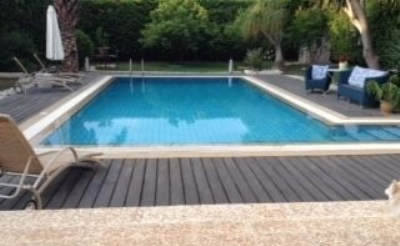 On the ground floor, continuing verandahs all around the house lead to the pool (10x5 meters overflowing), in a mature garden with tall trees offering complete privacy.
