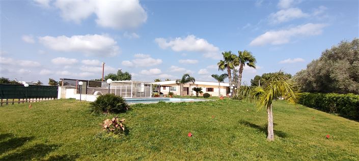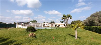 The garden area nearest the villa is immaculately kept with lawns, impressive palm trees and the focus - the spacious, inviting pool, 12 x 6 m with a pool house and BBQ. On the overall land of 10000 sq m is an olive grove (with resistant trees), fruit trees and a perfect place to grow additional fruit trees and vegetables.