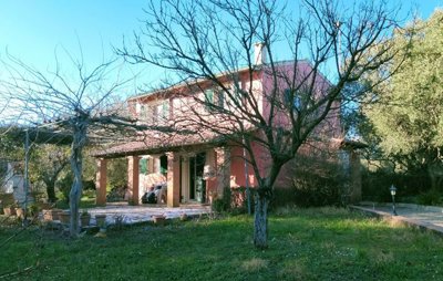 On the long side of the house there is a spacious terrace, partly shaded by a covered veranda. Next to this terrace there is a barbeque area and bread-oven. There is also a small storage room attached to the back of the house.