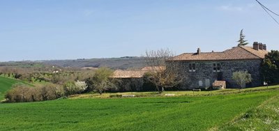 The ennobled Dordet de Saint Jean family began building the property in 1659. It was also used by the villagers for balls, musicians, shows, etc. This partly renovated 600 m² U-shaped house has access to an outside garden with a spacious terrace under arcades and a private courtyard. It comprises: ground floor - superb entrance hall, lounge, storeroom, bedroom with toilet, 2 spacious rooms for renovation. The first floor is accessed via two staircases and comprises open-plan kitchen/lounge, bedroom, shower room/toilet. A spacious landing, 2 large bedrooms with fireplaces and French ceilings, bedroom to be restored. A space that could become a lounge/library, shower room, toilet. A large cellar, adjoining the house, an awning, shed. Set in 2146 m² of wooded parklands with views over the valley. Miscellaneous: 6 fireplaces, period features, partly in need of restoration.