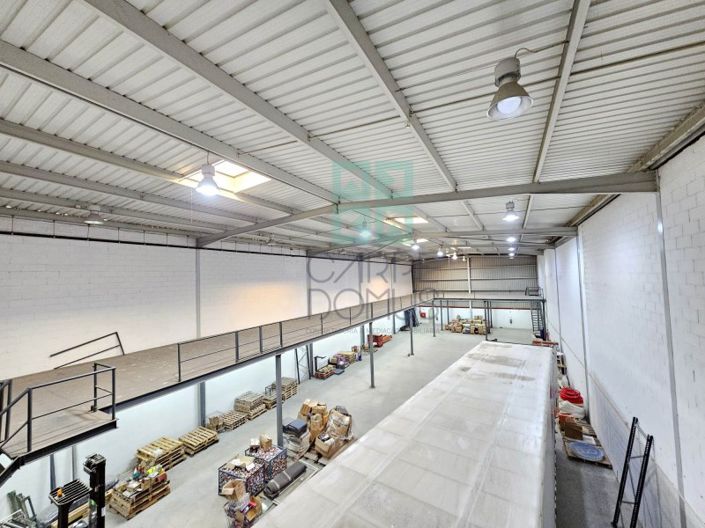 Composé d'un grand bâtiment d'entrepôt d'une hauteur allant jusqu'à 9,5 mètres. Espace bureau en mezzanine de plus de 250m2.