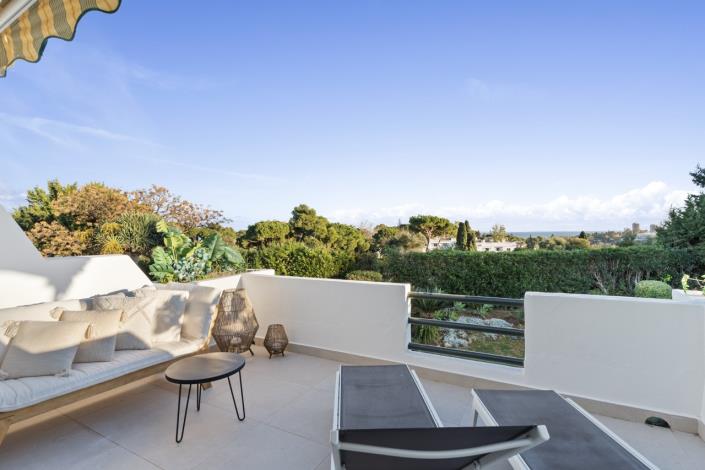 Welcome to this light and bright fully renovated four bedroom townhouse in the centre of Aloha in Nueva Andalucia, Marbella. Set within a gated and well maintained urbanization located in heart of Nueva Andalucia, next to Aloha Golf Club with great sea and mountain views. The townhouse is extremely spacious, with four bedrooms, two of which have their own private terraces and views to the coast. The community has beautiful mature gardens, a fabulous swimming pool area as well as Tennis and Padel Tennis courts, with spectacular views over the surrounding golf course.