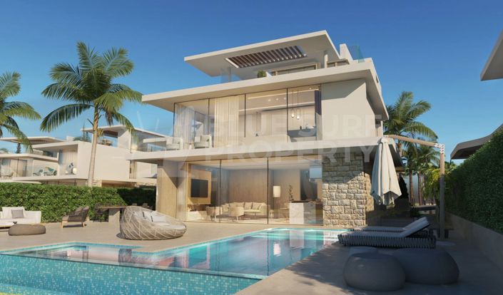 This magnificent villa is the last of twelve villas available, a rare piece of haven on the Mediterranean. The spectacular open plan living/dining area has been designed with the finest materials from across the globe, giving a homely feel yet sophisticated and elegance whilst utilising full use of the space. There is direct access out onto the covered terrace area a fab spot to sit, relax and admire the sheer wonderful views. The modern fitted kitchen has been designed with italian high-end materials with amply storage and worktop space and all the latest gadgets, perfect for all your kitchen needs. On this level there is a guest w/c.