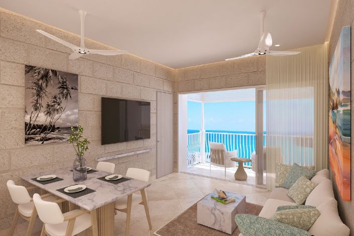Discover a thoughtfully designed 704 sq. ft. residence, blending elegance and functionality. This residence features a modern layout that maximizes space and light, with living and dining areas leading onto a generous private balcony overlooking the stunning Atlantic Ocean. The primary bedroom offers a tranquil retreat with serene ocean views from a charming glass-fronted Juliet balcony. The en-suite bathroom is crafted for relaxation, featuring floor-to-ceiling natural stone tiles, dual vanity sinks, and a luxurious walk-in shower. Each residence is complete with essential kitchen appliances and a convenient washer& dryer, providing seamless ease in your daily routine. Embrace the resort lifestyle at The Crane in this beautifully appointed home