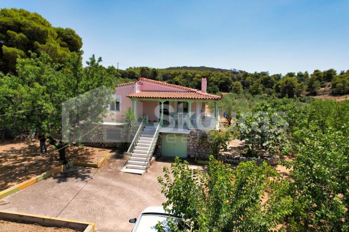 In a quiet and sparsely populated area in the plain of Kranidi, an independent detached house with a total area of 217.07 m² is available for sale, situated on a fenced plot of 2,021.28 m². The residence is spread over two levels, offering spacious and functional areas. The first level, with an area of 137.63 m², is a single, square-shaped space (12.02 m * 11.45 m) that is ideal for storage use. However, with appropriate interventions and actions, it can be transformed into additional living space or another type of useful area, as it has direct access and openings to the landscaped plot. The second level, with an area of 79.44 m², constitutes the main residence and features an open-plan kitchen, dining, and living area with a fireplace, creating a warm and welcoming environment. Additionally, this level includes two bathrooms and two spacious bedrooms, offering comfort and functionality. The perimeter veranda, approximately 80 m², is covered with a pergola and offers beautiful unobstructed views of the plain and surrounding hills, creating the ideal place to relax and enjoy the natural beauty of the area. The residence is used as a secondary vacation home and is maintained in excellent condition. In 2022, renovations were carried out, including the upgrade of the electrical installation, interior and exterior painting, and the installation of new PVC frames, thus ensuring modern aesthetics and energy efficiency. Access to the residence is easy, via a 7-meter-wide municipal road. The plot is fenced and decorated with various plants, such as olive trees, vines, fruit trees, and ornamental plants. This beautifully landscaped area offers a sense of tranquility and connection with nature, making the residence ideal for those who wish to live in a green environment. It is worth mentioning that within the plot there is a well, which provides water suitable for garden irrigation and for use within the residence, offering autonomy and economy in water resource management. The location of the residence in the plain of Kranidi offers a unique opportunity to live in an area that combines the tranquility of the countryside with proximity to essential amenities and services. Kranidi, as the capital of the municipality of Ermionida, offers all necessary infrastructures such as shops, restaurants, and health centers, making the residence ideal for permanent or vacation living. The area is known for its natural beauty, with green hills, olive trees, and vineyards dominating the landscape. Additionally, the close proximity to beaches and tourist attractions in Ermionida adds value to this property, making it an ideal choice for those who wish to enjoy nature and the sea. This independent detached house in the plain of Kranidi is an excellent investment option for those who wish to acquire a traditional, Mediterranean-style residence in one of the most charming and developing areas of Ermionida. With its excellent condition, spacious design, and wonderful location, it is an ideal choice. Indicative distances: - 1.5 km from the center of Kranidi - 3 km from the under-construction golf course - 5 km from the beach - 9 km from the beautiful Ermioni - 6 km from the cosmopolitan Porto Heli - 200 km from Athens International Airport.