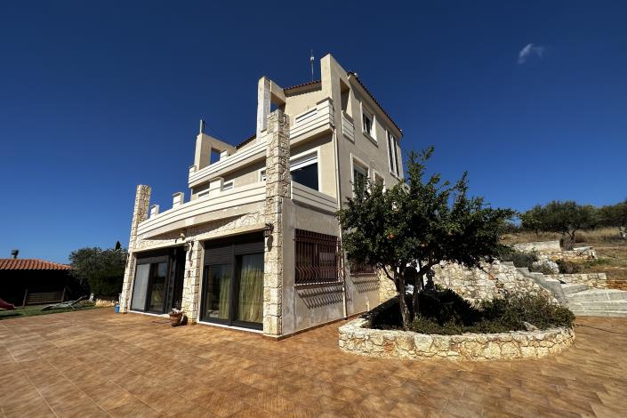 This stunning villa, built in 2009, is located just 2 kilometers from Kounoupidiana and 800 meters from the sea, offering both a beautiful sea view and a scenic mountain view. The property includes two separate houses on a spacious 2670 m² plot. The ground floor house is 115 m² with 3 bedrooms and 1 bathroom, while the first floor house, spanning 170 m² over two levels, has 3 bedrooms and 2 bathrooms and is currently unfinished. The villa features a large garden with room for a pool,storage room, a BBQ area with an outdoor kitchen and dining room, off-road parking, an electric gate, and a comprehensive security system with an alarm and cameras. Inside, the homes come with some furniture, air conditioning, central heating, aluminum frame and double glazing windows, and fly screens. This property is priced at €700,000 as-is, or €850,000 fully finished, offering a blend of comfort, security, and modern amenities in a beautiful location.