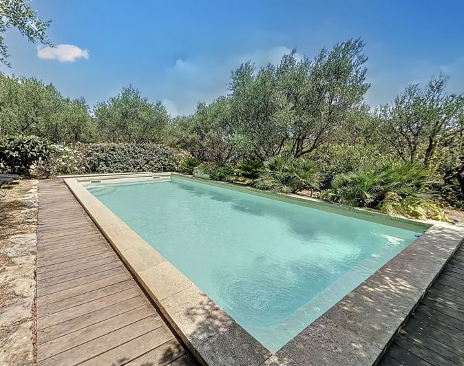 In a quiet residential area but close to the village. nestled in the heart of a flat enclosed 2000 m2 plot of land. planted with various Mediterranean species. not overlooked. this property offers:
