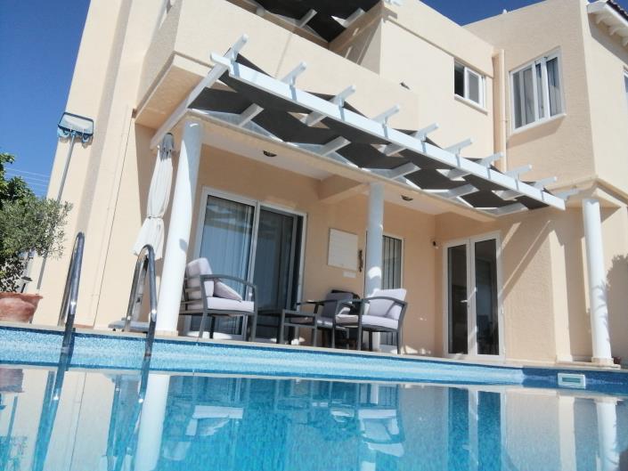 Outside you are private whenever you choose to take a swim, sitting and watching the mountains or having a barbecue. The pool area benefits from covered pergola with lounge furniture and sunbeds with umbrella. The pool has multicolor light which gives the opportunity to enjoy the pool also in the evenings. From the pool area you have a nice mountain view and in the evenings the twinkling lights of Polis