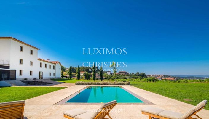Le glamour de cette magnifique propriété est complété par son extérieur, dans lequel on trouve un fabuleux jardin et environ quatre hectares de terres agricoles, avec un vignoble de cépages vinho verde, un verger biologique, ainsi qu'un excellent potager, le tout entretenu par un chef d'exploitation qui vit dans la maison de soutien à l'intérieur de la ferme.
