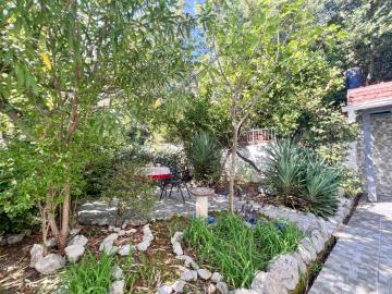 The property also includes a private parking spot and a small, secluded garden with orange and lemon trees. At the back, there's an auxiliary building equipped with a summer kitchen and storage space.
