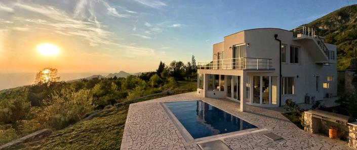 Newly constructed residence situated on nearly 3,661 square meters of land featuring stunning panoramic views of the sea and mountains.