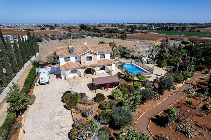 Distinctive 3-bedroom detached villa with Title Deeds for Share of Land, swimming pool, annex and fantastic views of Famagusta located on a large plot in a quiet residential area in the village of Frenaros, positioned adjacent to lovely country fields, a short distance to the local tavernas, shops and supermarkets and a 20-minute drive to the beach. Perfectly located in an all-year-round location, with easy access to Ayia Napa, Kapparis and Protaras.