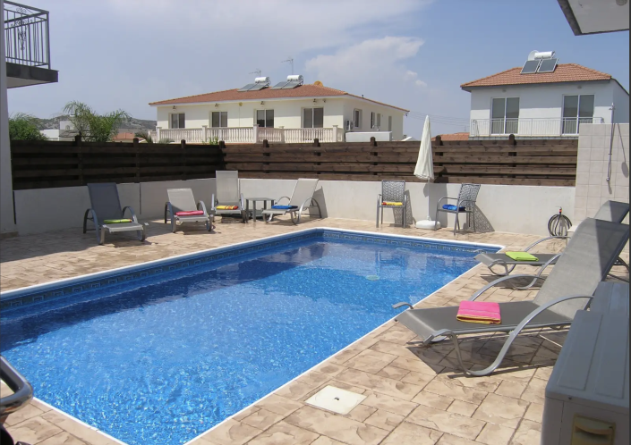 The house features off-road parking, large verandas, and a landscaped garden complete with a BBQ area, ideal for hosting outdoor gatherings or enjoying serene evenings. One of the highlights of this home is the private swimming pool, offering a luxurious retreat for cooling off during Cyprus’s warm summers. Additional storage space adds to the practicality of the house, providing ample room to organize belongings.