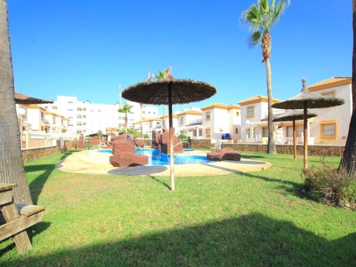 Les espaces extérieurs comprennent une terrasse surélevée, ainsi que des jardins à lavant et sur les côtés, et un parking hors route dédié. À distance de marche, vous trouverez des centres commerciaux populaires tels que Los Dolses, Rioja et Zenia Boulevard, qui proposent une gamme de boutiques, de restaurants et de supermarchés. De plus, certains des meilleurs terrains de golf et plages de la région ne sont quà une courte distance en voiture.