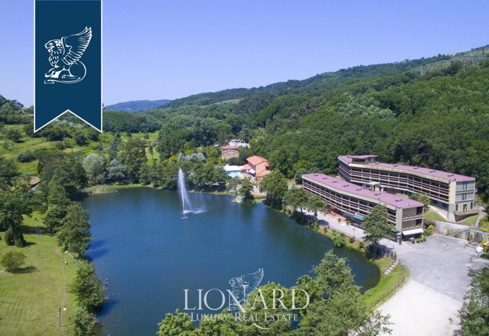 This luxury hotel overlooking its own suggestive lake is for sale on the green hills near Pistoia. Built in the 1970s this prestigious hotel is made of two separate estates which host the bedrooms, one has three floors while the other has five. There is then another two storey building with a restaurant, a conference room, a basement floor, and a big outdoor swimming pool. A further two storey 130 m2 building is home to other bedrooms, for a total of 89 rooms which can accommodate up to 200 guests. The whole complex is equipped with a big parking area. Plots of land with grass are also part of this property, with a total surface of around 3.9 hectares.