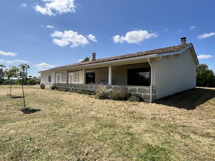 This tastefully renovated property offers a light and spacious open plan kitchen, dining and living area with cathedral type ceiling and exposed beams. it has both an open fireplace as well as an insert woodburner, cleverly vented to heat the house as well as conventional radiators. Two sets of sliding glass doors lead onto a large covered terrace overlooking the landscaped garden with a variety of fruit trees. The property which is entirely double glazed has 4 double bedrooms, bathroom, shower room, 2 separate WC's and large utility room. A garden of 3000m2 surrounds the whole property with room for a pool if desired.
