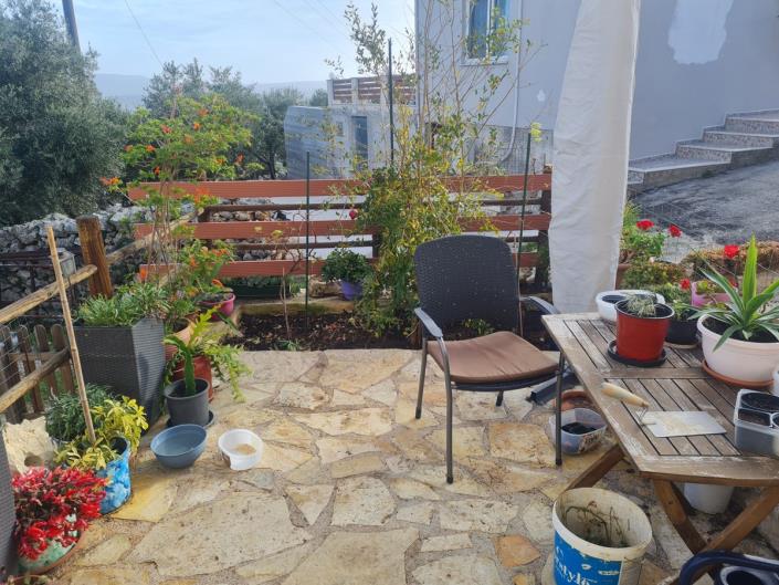 The small garden with many Mediterranean plants was created with a lot of love and gives the calming aroma of Cretan mountain herbs in summer. The olive grove with about 30 trees has been brought back to life in the last 5 years and offers the possibility of producing its own organic olive oil for the whole year.