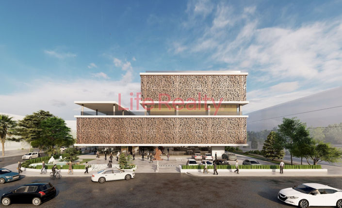 This plot obtained a Planning Permit for a five-floor commercial development totaling 8800m². It will include an underground level of 102 parking spaces, a ground-floor lobby and a business center, a covered terrace floor, and five floors of offices as follows: