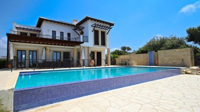 Situated on one of the highest plots on the Eastern Plateau of Aphrodite Hills with panoramic views over the resort to the sea, this 5 bedroom 5 bathroom villa is available for sale fully furnished. The property has recently undergone considerable refurbishment to the outside areas with a huge new patio and entertainment area making the most of the fabulous view across the rooftops.