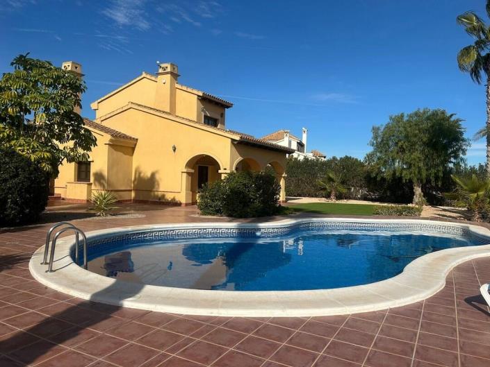 This beautiful detached villa situated on a large plot, front line golf, with a large shaped swimming pool and the most amazing views over the signature hole of the golf course. The garden is mature and full of character with lots of areas for relaxing and enjoying the outdoors.