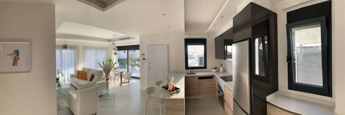 Les villas ont 3 chambres à coucher, 2 salles de bains, salle à manger - salon avec cuisine ouverte, placards intégrés, jardin privé avec l'espace de stationnement et solarium.