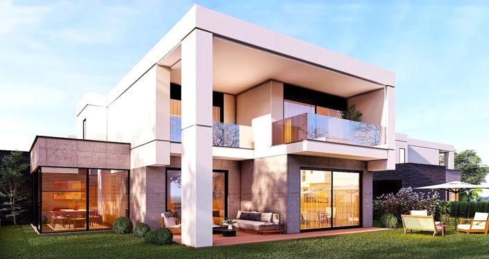 The project consists of 8 villas, each with a 690 m² plot area. The villas offer a 310 m² garden area and parking for 2 cars. The villas feature a 5-bedroom, 2-living room layout, with 2 spacious balconies overlooking the veranda and city view. Each villa has 5 bathrooms and a storage area, and is located in the heart of nature and village life. The exterior façade and garden landscaping are completed, while the interiors will be delivered in an unfinished state, allowing the buyer to design the interior according to their own preferences.