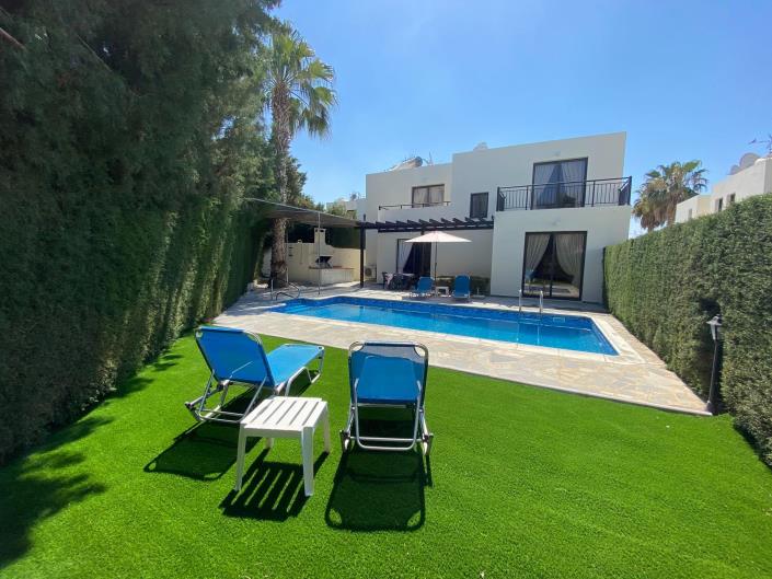 A fantastic Three Bedroom Villa, less than150m to the sea, is for sale in a small gated development in Kissonerga.