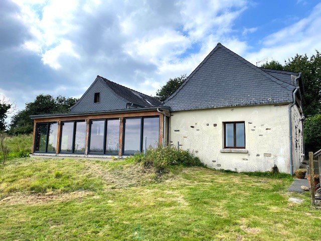 In the heart of the Monts d'Arree, in an exceptional site with a clear view, the potential of this area will blow you away! Composed of two stone buildings, you will discover for the main house: entrance, spacious fitted and equipped kitchen-diner, bathroom, 2 toilets, laundry room, living room opening onto a veranda with a magnificent clear view of the valley, 2 bedrooms upstairs and a large attic converted into a bedroom. The second building will allow you to continue the bed and breakfast activity if you wish! It is composed of 4 furnished bedrooms each with a shower room and toilet, large dining room with wood stove, second room with wood stove (meetings, activities, etc.), kitchen, shower room, toilet, laundry room. In addition to this, there are two sheds and a wooden shelter. Landscaped garden, terrace, coated courtyard, individual sanitation to standards... Would you like to know more? Contact me! Fees including tax payable by the seller Commercial agent Sextant France - Sandrine Stephan agent based in GOUEZEC - 06 58 36 81 60 - More information on here ref. 23580