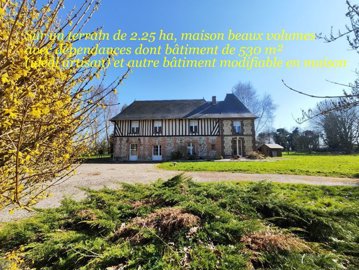 20 min South of Lisieux and 15 min from Bernay, 2 steps from Orbec, small town with all shops, schools and colleges, beautiful property composed of: - a house with quality services on a surface area of 177 m² of living space including kitchen / dining room of 40m² very bright, 6 bedrooms, shower room, bathroom, heat pump with gas relay, very low heating consumption, aluminum joinery. - a half-timbered building to renovate with the possibility of converting into a residential house with independent access, ideal project of gite. - A building of 530 m² (ideal craftsman) with beautiful volumes of storage and garage. This entire property extends on a plot of 2.25 hectares with pleasant part arranged in wooded park and other part in agricultural land. The property can be divided according to the project as there are independent accesses for each property. Price including VAT and fees payable by the seller. Sextant France sales agent - Deborah Dutot, agent based in COURTONNE LES DEUX EGLISES - 07 80 31 17 09 - More information on here ref. 24853