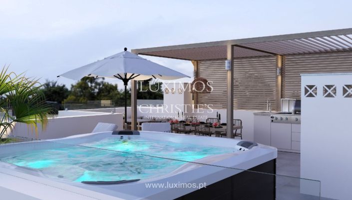 Appartement moderne et spacieux de quatre chambres dans un complexe résidentiel à Armação de Pera, Algarve, à 300 mètres de la plage.