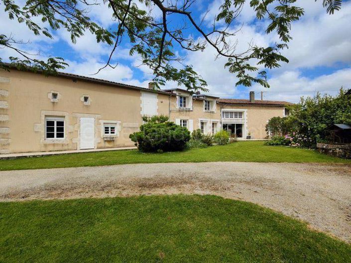 Grande maison en pierre de 260 m2 (parties mansardées incluses), située à quelques kilomètres de Civray, et à proximité d’un plan d’eau, comprenant :Au rez-de-chaussée : une cuisine aménagée avec espace repas de 25,90 m2, avec cheminée, une salle à manger attenante de 23,70 m2 sur parquet, un grand séjour lumineux de 45 m2 avec grande baie vitrée, belle hauteur sous plafond, cheminée ouverte, un salon de 29 m2 avec poêle à bois, un couloir desservant une suite parentale de 25,17 m2 avec dressing et une salle de bain avec baignoire et douche italienne, une buanderie de 12 m2 avec accès à l’extérieur, un cellier, un dégagement avec placard, WC et chaufferie ;A l’étage, grande mezzanine de 21 m2 donnant au-dessus du séjour, un couloir desservant 3 chambres sur parquet flottant de 11,95 m2, 12,80 m2 et 13,35 m2 et une salle de bain avec WC. Trois greniers d’environ 30 m2 chacun.Ouvertures en double vitrage, chauffage central au fioul et poêle à bois.Piscine hors-sol 6x4, garage attenant à la maison de 26,30 m2 avec sortie directement sur la route, avec grenier au-dessus, une grange d’environ 90 m2, atelier et préau.Le tout sur terrain clos et arboré de 3 410 m2 et un terrain de 472 situé de l’autre côté de la route. Les informations sur les risques auxquels ce bien est exposé sont disponibles sur le site Géorisques :
