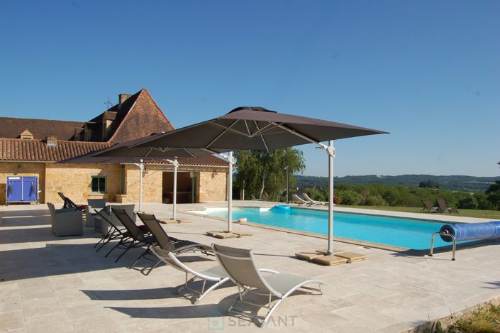 In the heart of the picturesque Périgord Vert region, discover this 17th-century stone property complex, sumptuously restored to preserve its authenticity while incorporating modern comforts. The property consists of a 450 m² main house with a superb attic with exposed beams offering great development potential, as well as two independent houses of 150 m² each. In addition, there is a cinema room, a games room, a space dedicated to yoga and meditation, a wellness area with a jacuzzi, sauna, massage room, and an 80 m² barn. The property is equipped with a geothermal central heating system, guaranteeing optimal comfort throughout the year. The estate extends over approximately 2.3 hectares of wooded land, a veritable green setting, featuring a 12 x 6 heated swimming pool. This natural, peaceful, and preserved setting invites relaxation and serenity. This luxurious haven of peace is perfectly suited to an ambitious family project or a high-end tourist accommodation business. This historic gem constitutes an exceptional place, where your noblest aspirations come to life and flourish in a unique setting of lush, preserved nature. Agency fees including tax payable by the seller - Sextant France sales agent - Damien Masse - 06 72 80 62 70 - More information on