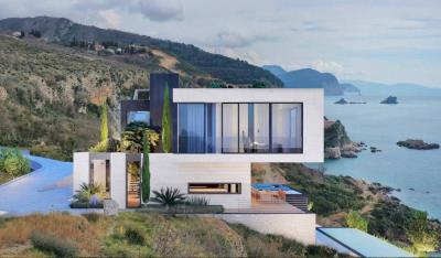 For sale: a luxurious designer villa perched on a cliff above the sea, located in the tranquil area of Reževici.