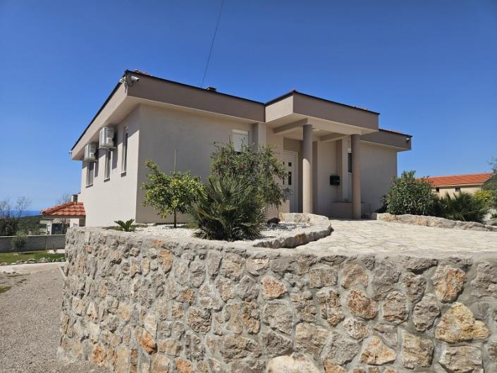 For sale is a stylishly designed home located in Krimovica, offering an excellent position with easy access, a generous landscaped yard, and wide open views of the sea.