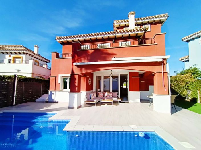 Découvrez une superbe opportunité de posséder une villa individuelle moderne dans le très recherché Mar Menor Golf Resort, lune des communautés fermées les plus populaires de Murcie. Cette maison impressionnante est parfaitement située près du littoral, à quelques minutes en voiture de la plage, des restaurants locaux et de laéroport international de Murcie, ce qui en fait une résidence idéale à temps plein, une maison de vacances ou un investissement locatif à haut rendement.