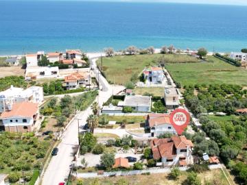 Unique opportunity for a house or vacation home, just 100 meters from a Blue Flag beach, in a quiet seaside area near Aigio, Patras, Diakopto, and Kalavryta. The property is located near the famous "Meltemi" restaurant and offers an ideal environment for family living, relaxation, or tourism investment. The plot is fully enclosed with a high white wall and iron railings, ensuring complete privacy. It features beautifully landscaped gardens with trees and plants, a spacious paved yard at the entrance with a carport and external lighting. The back yard offers a pergola, a built-in BBQ, and a traditional wood oven, perfect for hosting gatherings and enjoying summer days. Inside, the house includes a living room, fully equipped kitchen, two (2) bedrooms on the ground floor, and an additional bedroom on the upper floor with an en-suite bathroom, accessed by an internal wooden staircase. The property also features a solar water heater, and newly installed drainage pipes with a quick connection to the sewage system. A significant bonus is the water well in the back yard, with a 3-inch pipe and gasoline pump for irrigation purposes, which can easily be upgraded to an electric pump. The house also has a 30 sq.m. basement storage area and an additional external storage room. Located in a developing tourist area, close to the city center and essential amenities, this property is an excellent choice for permanent residence, vacation home, or a rental business opportunity.