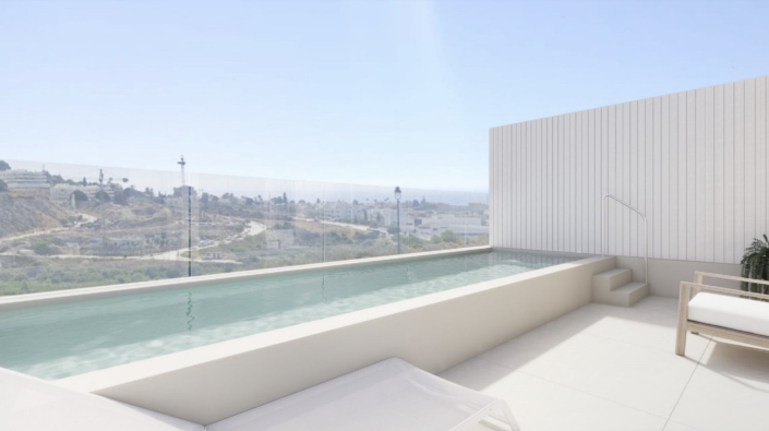 Exclusive brand new boutique development of just 10 villas with beautiful sea, golf and mountain views. Each villa has four bedrooms with either three or four bathrooms, one or two guest toilets and an office, each with private salt water swimming pools; the corner villas have a large wrap around garden with swimming pool, whilst the centre villas have infinity pools on the stunning rooftop terraces. The villas have been designed to the very highest of standards, with the ground floors having open modern living areas, fully fitted kitchens, a guest bedroom, family bathroom and access to a sunny terrace, private gardens and swimming pools (corner villas only). On the first floor you find two guest bedrooms and the master en-suite that leads to a large terrace with simply stunning views. On the top floor you find a large solarium with panoramic views with the central villas having infinity swimming pools. Each villa has an aerothermic air-conditioning system with both hot and cold air, under floor heating throughout, high quality porcelain flooring, fully equipped kitchen with Siemens or similar appliances, fitted wardrobes in all of the bedrooms, oversized windows and private parking. These are the best priced villas on the coast, with stunning views and built to an extremely high quality!