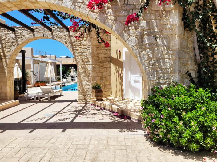 The exterior spaces of the complex are thoughtfully designed, with stone arches and well-maintained gardens that offer a peaceful, natural setting.