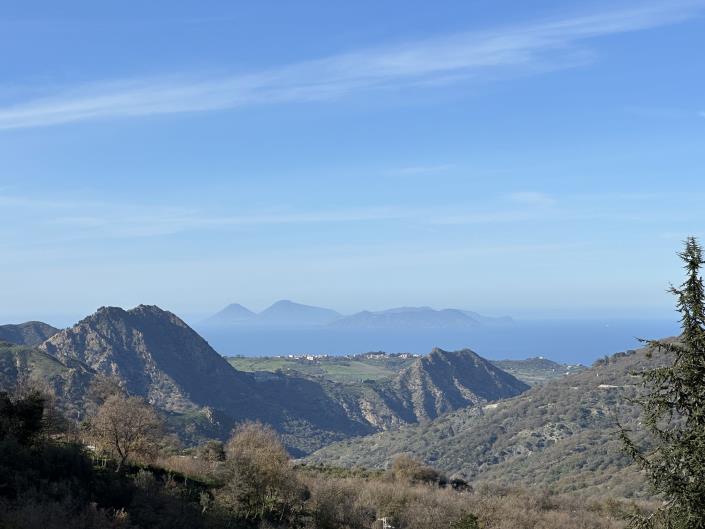The terrace serves as a private observatory, offering sweeping, uninterrupted vistas—an ever-changing canvas of nature that seamlessly blends the dramatic mountain landscape with the serene expanse of the sea and the distant silhouettes of the Aeolian Islands. This captivating view is one of the most celebrated in Novara di Sicilia and provides a perfect setting for relaxation, entertaining, or simply soaking in the natural beauty that defines this unique location.